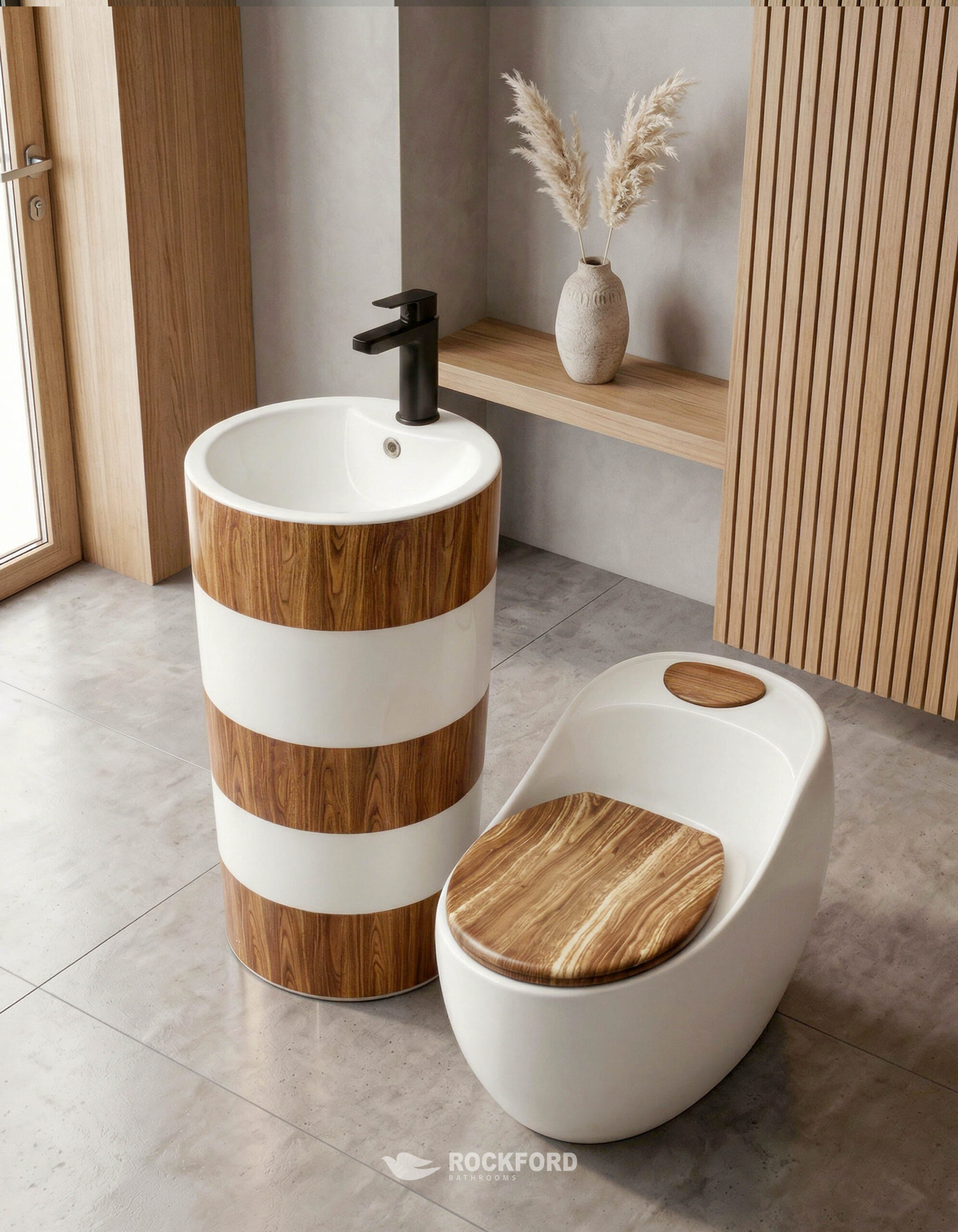- Organic Aesthetic: A distinctive, warm wood-grain finish paired with pure white ceramic, perfect for creating a spa-like, tranquil atmosphere in any modern home.
